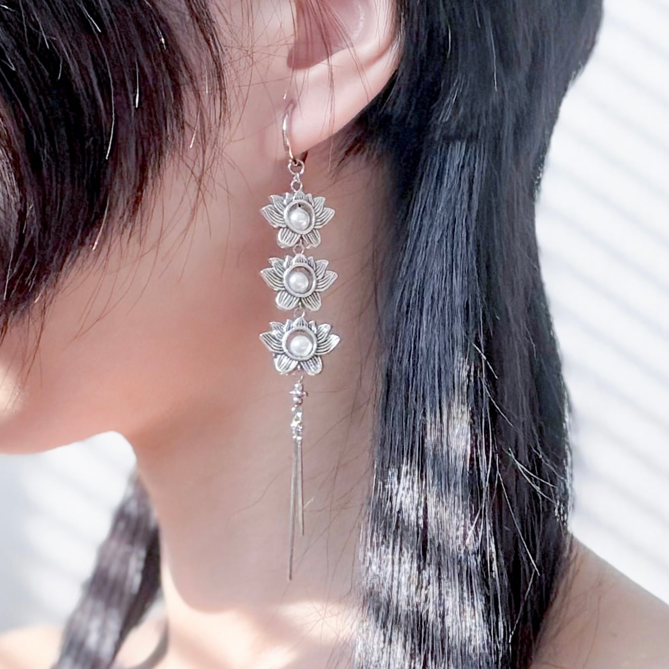 中華文化圏で縁起が良いとされる[蓮]モチーフがメインの耳飾り。