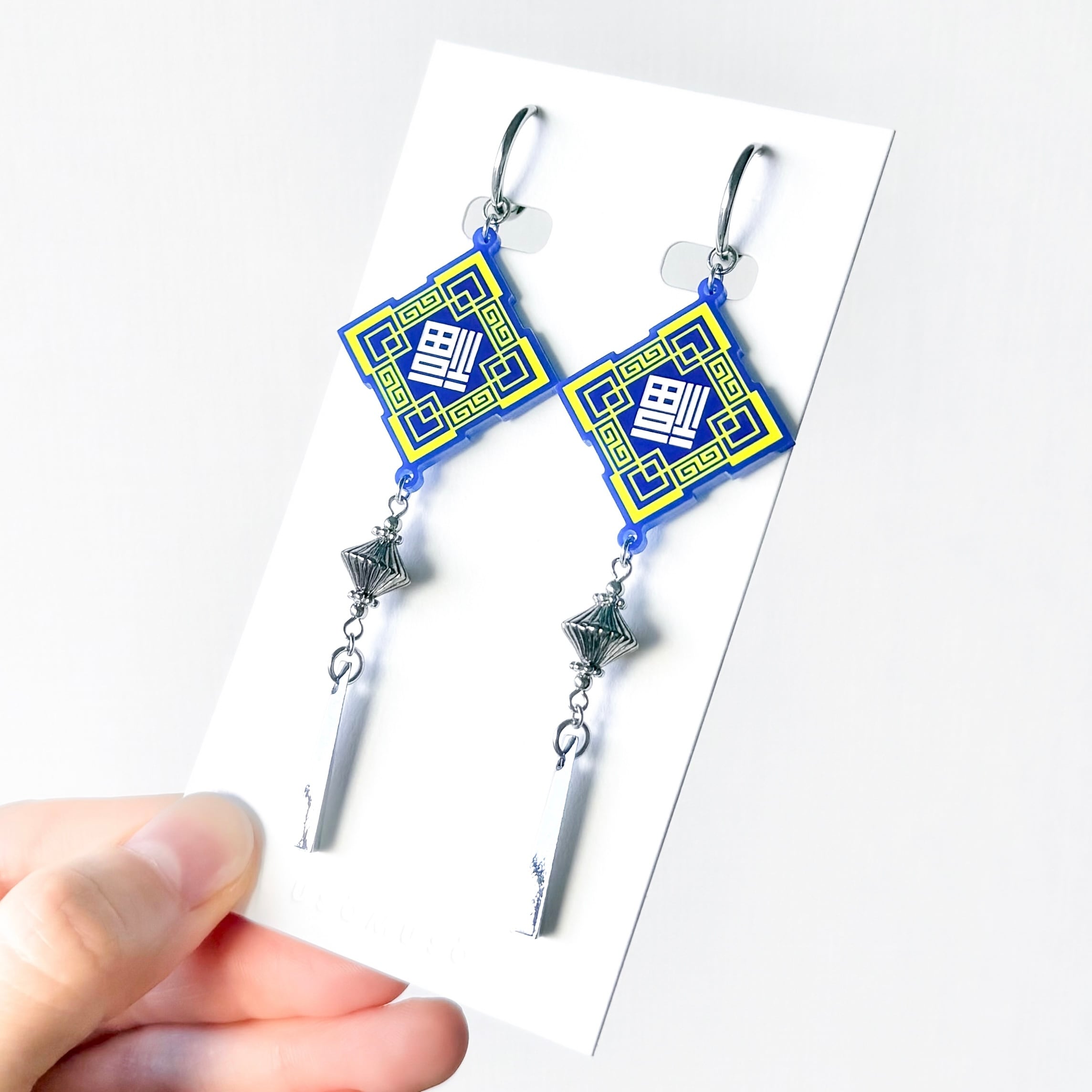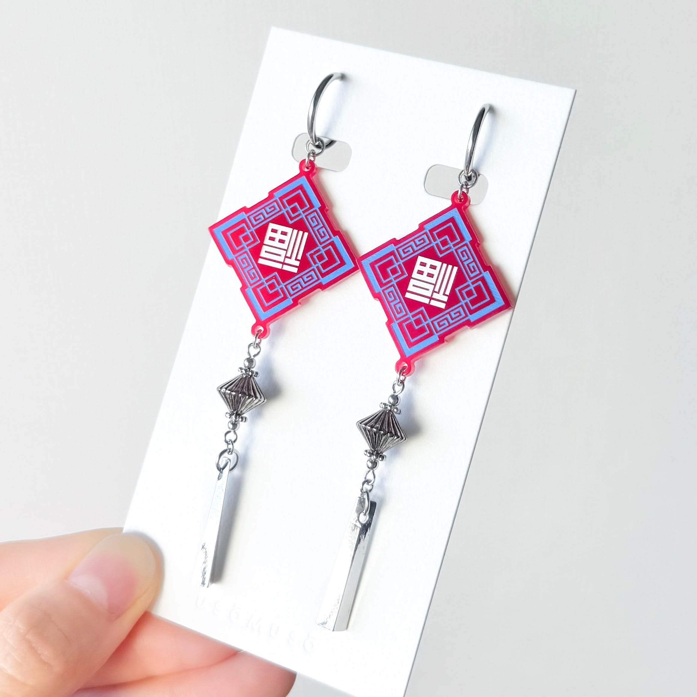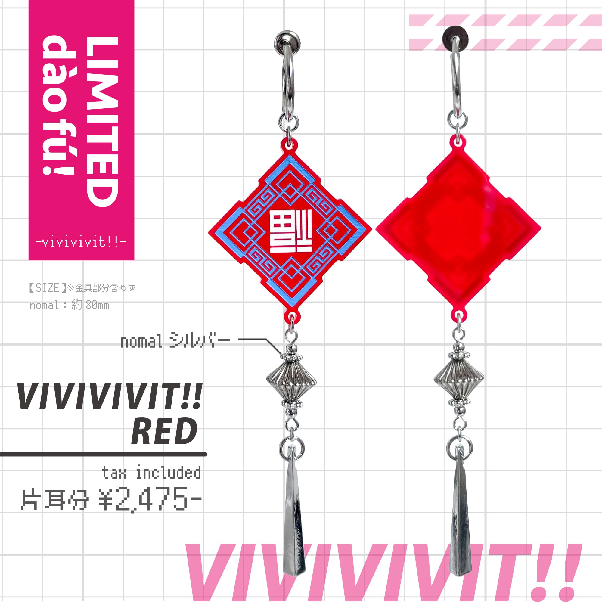 中華文化圏で縁起が良いとされる[倒福]のモチーフをusomusoらしいモードなデザインに落とし込み、耳飾りに仕立てました。