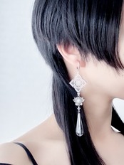 中華文化圏で縁起が良いとされる[倒福]のモチーフをusomusoらしいモードなデザインに落とし込み、耳飾りに仕立てました。