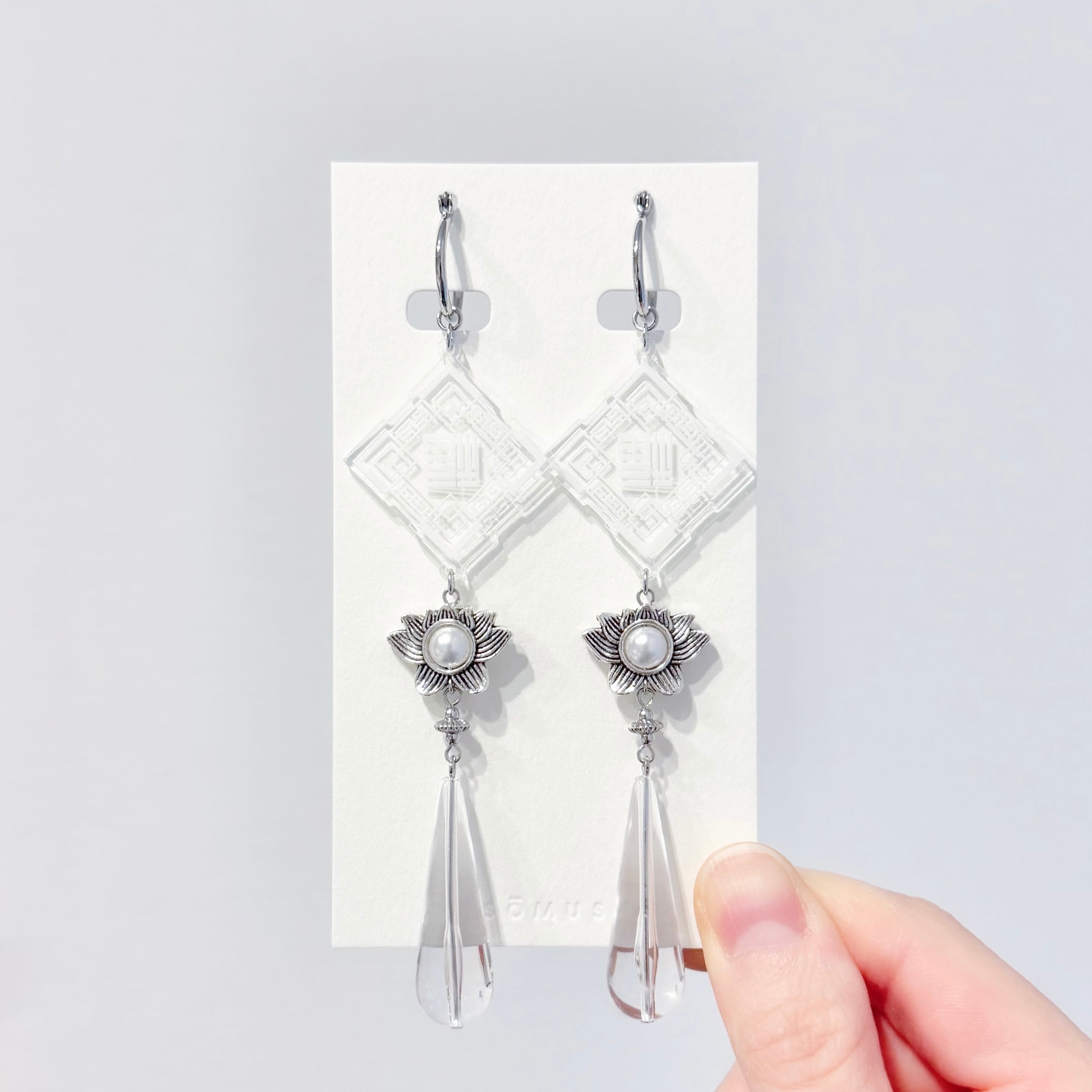 allクリアパーツなので、存在感もありつつコーディネートに抜け感もプラスしてくれそうな大振りデザインの耳飾りです。