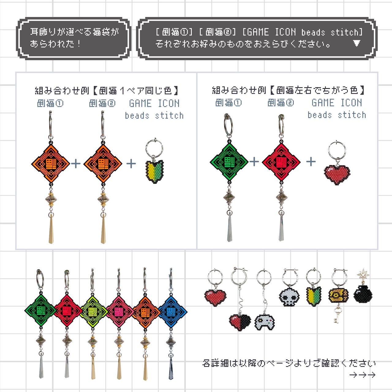 ・GAME ICON beads stitch 耳飾り 種類選択